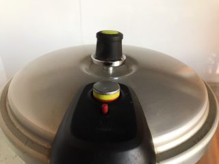 8.将洗干净的棒骨放入高压锅黄豆洗干净撇去水分,也倒入